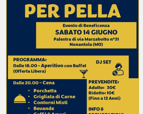Sabato 14 Giugno, in memoria di Michael Pellittieri “Pella”, gli amici organizzano anche quest’anno una serata in ricordo del loro caro amico. Il ricavato verra’ devoluto alla nostra Associazione. Vi aspettano nella palestra di Via Marzabotto 31 a Nonantola (Mo) a partire dalle 18.00 per un aperitivo con buffett a cui seguira’ la cena per cui e’ previsto un contributo di €...
