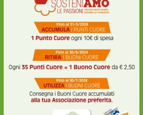 Abbiamo il piacere di condividere con voi che AIL Modena partecipa all’iniziativa “Sosteniamo le passioni” CONAD GRAZIE a : C.C LA ROTONDA – CONAD MADONNINA – CONAD DA VINCI – CONAD CITY che hanno aderito a questa iniziativa benefica Fai la spesa nei punti vendita che aderiscono : DONA A NOI I TUOI BUONI CUORE fino al 30 luglio 2024 GRAZIE al tuo...